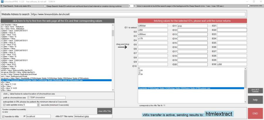 - 4. Click on „click here to extract only selected ID's“, these values will then be selectively read and transferred to vMix, if desired and possible.