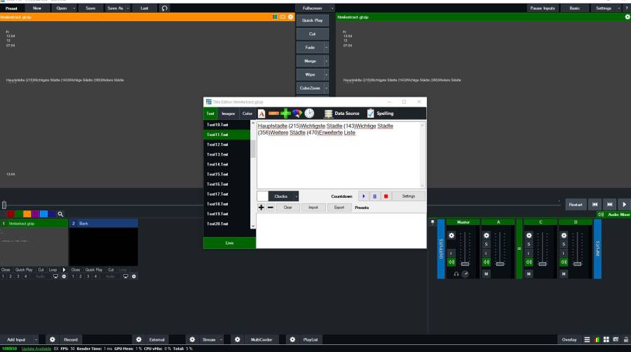If a vMix system is connected, the single lines are transferred to a gtzip title.