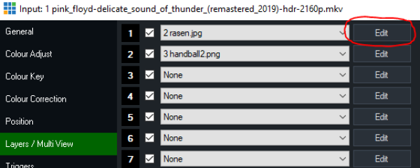 In den 10 Dropdown Menus der Layer kann einer der existierenden Eingänge angewählt werden. Die Layer sind übereinander angeordnet. Zuunterst ist der Eingang, darüber kommen die Layer 1-10. Das bedeutet Layer 2 deckt Layer 1 ab, Layer 10 deckt Layer 1-9 ab etc….