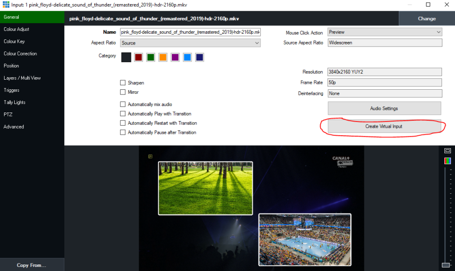Ein mit Layern versehener Eingang kann, wie jeder andere, als virtueller Eingang verdoppelt werden. So kann z.B. ein Multiviewer mit 16 Bildern ab einem 2. vMix Rechner erstellt werden. Du erstellst einen Multiviewer mit 8 callern ab dem ersten Rechner, schickst diesen als NDI zu einem zweiten vMix Rechner und addierst dort weitere 8 Caller zu einem 16-fach Multiviewer.