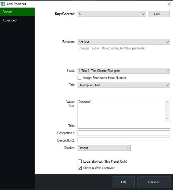 Am Anfang ist der vMix Script Builder (ein externes Hilfsprogramm) auch eine unverzichtbare Hilfe. Es erstellt Scripts mit der korrekten Syntax, Auswahl via Pulldown Menus.